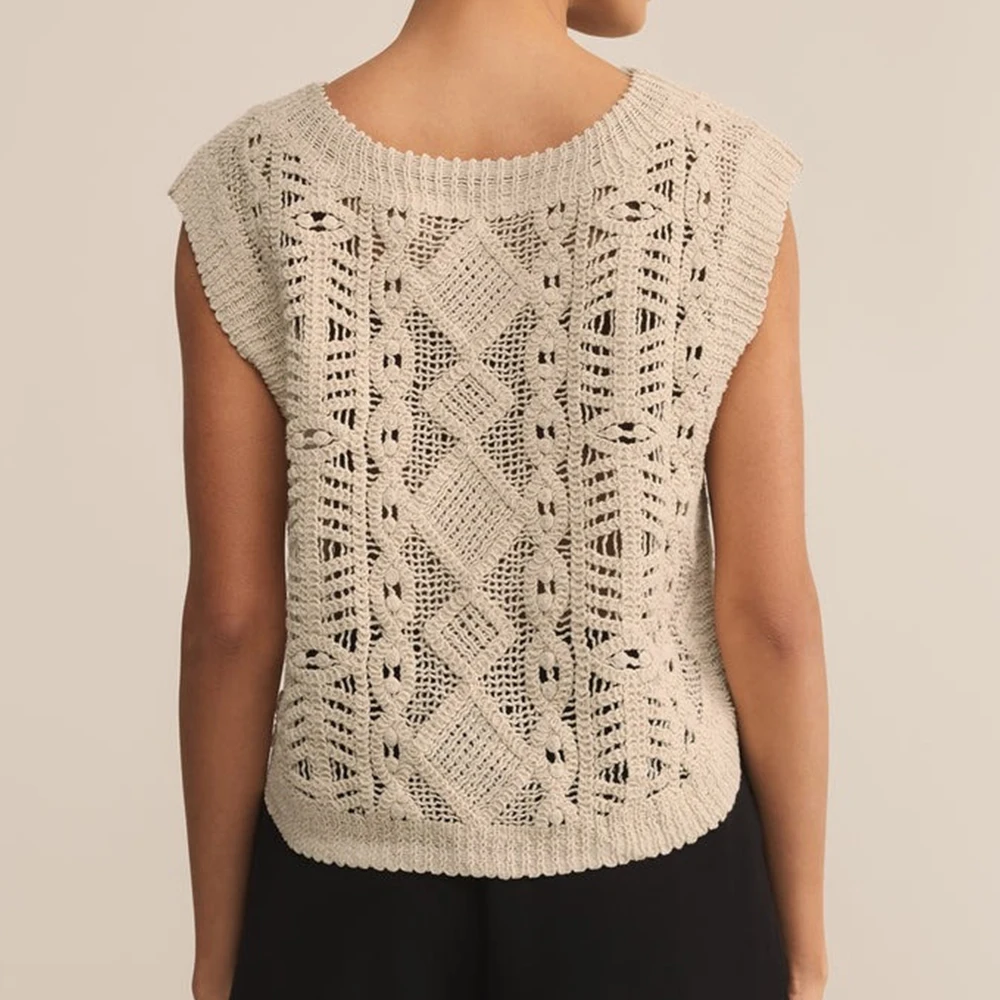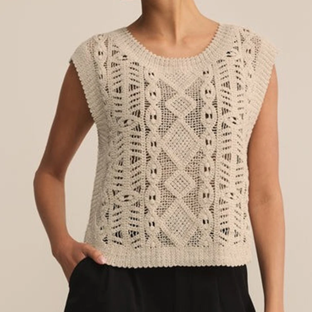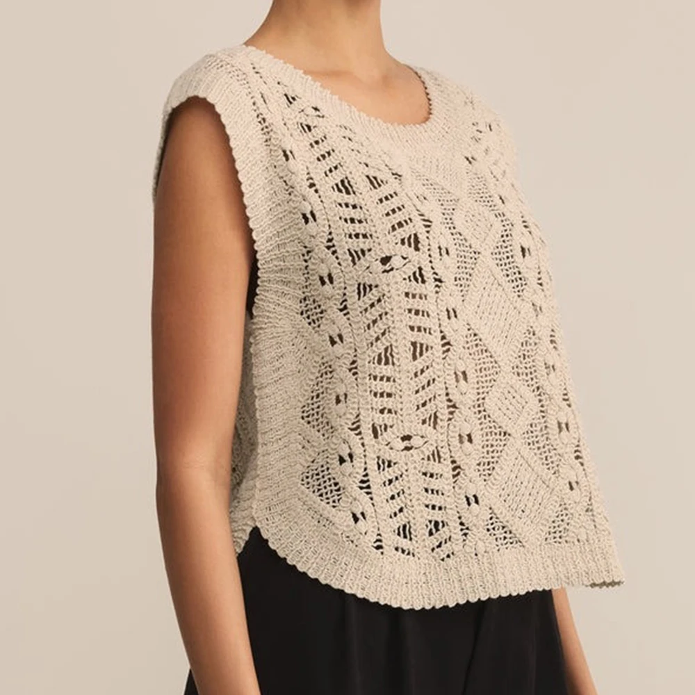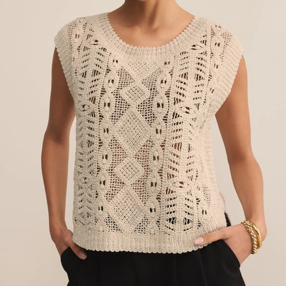 Wisrise Fashion Factory Custom High Quality Women's Lightweight Crew Neck Relaxed Fit Sleeveless Crochet Sweater Top